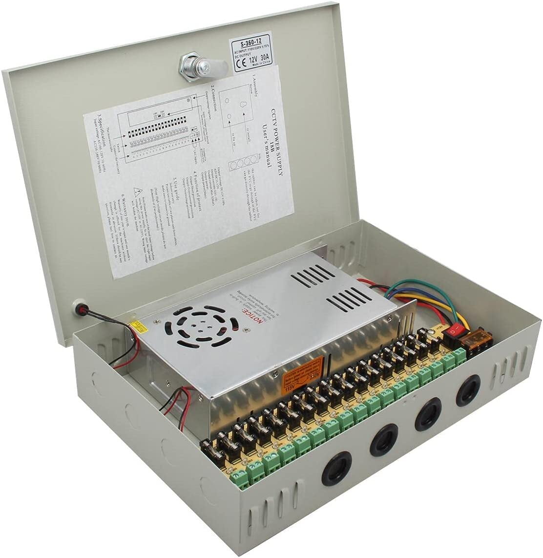 مزود طاقة كاميرات مراقبة CCTV بجهد 12 فولت وتيار 30 أمبير مع راك، يدعم 18 قناة