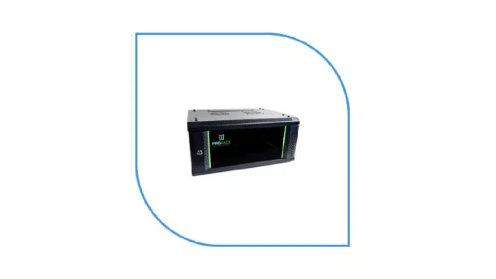The ProRack 4U cabinet is a compact and secure solution for organizing your equipment while maximizing space. The glass door and cooling fan ensure your devices stay visible and cool, while the PDU distributes power effectively, all in a small, wall-mounted design.